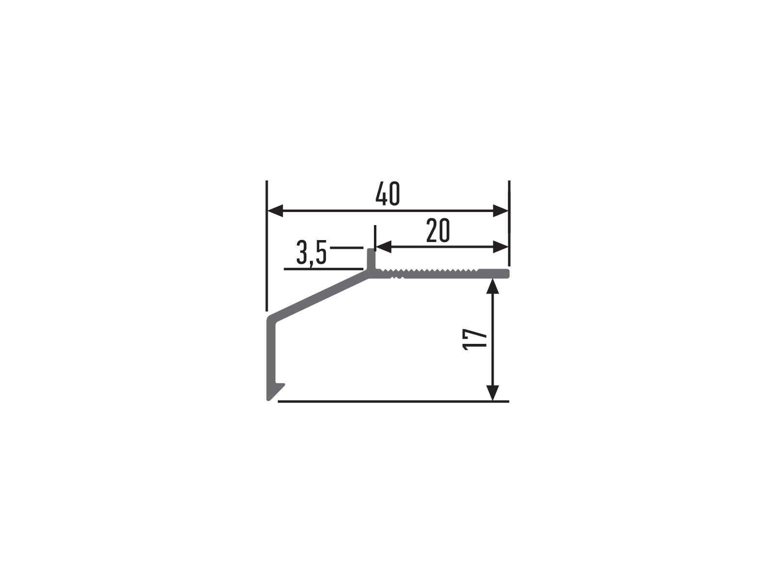 Балконный профиль с капельным свесом 20 мм для установки на край готовой стяжки. Высота покрытия составляет 3,5 мм. Данный профиль может использоваться под фининшное бетонное покрытие, а также он идеально подходит для наливных полов толщиной от 2 до 3,5 мм. Профиль служит для отвода воды с балкона и терасс.