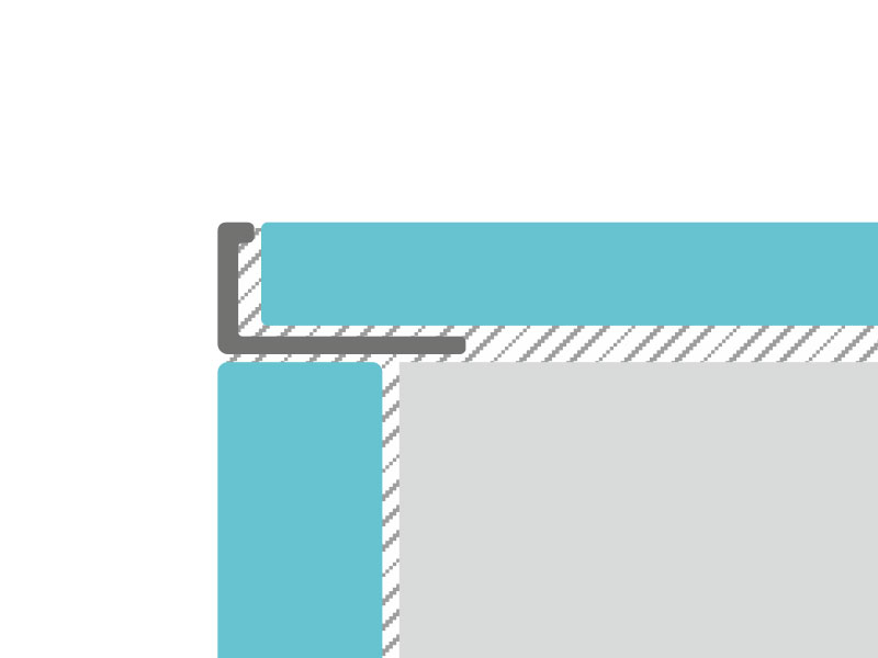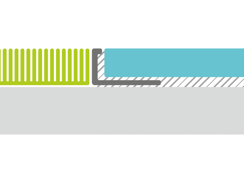 Перфорированный L-образный профиль шириной 8 мм для прямой отделки краев плитки. Способ крепления: клей для плитки. Материал: нержавеющая сталь.