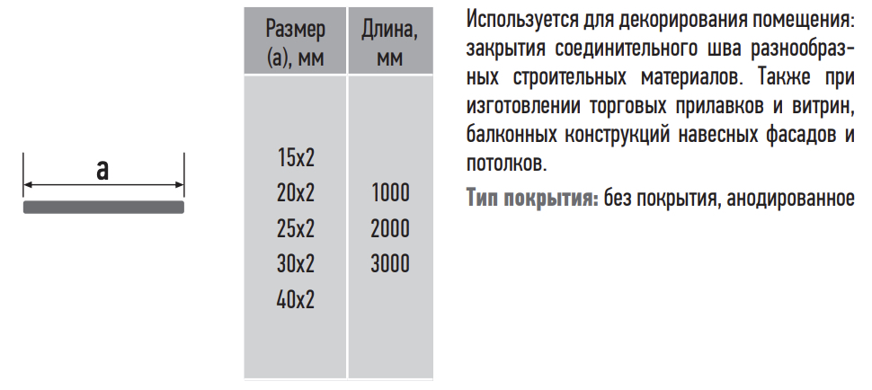 Размеры: 15х2, 20х2, 25х2, 30х2, 40х2
