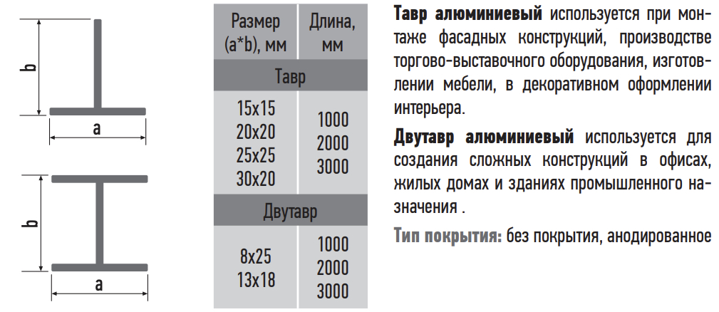 Тавр/двутавр алюминиевый