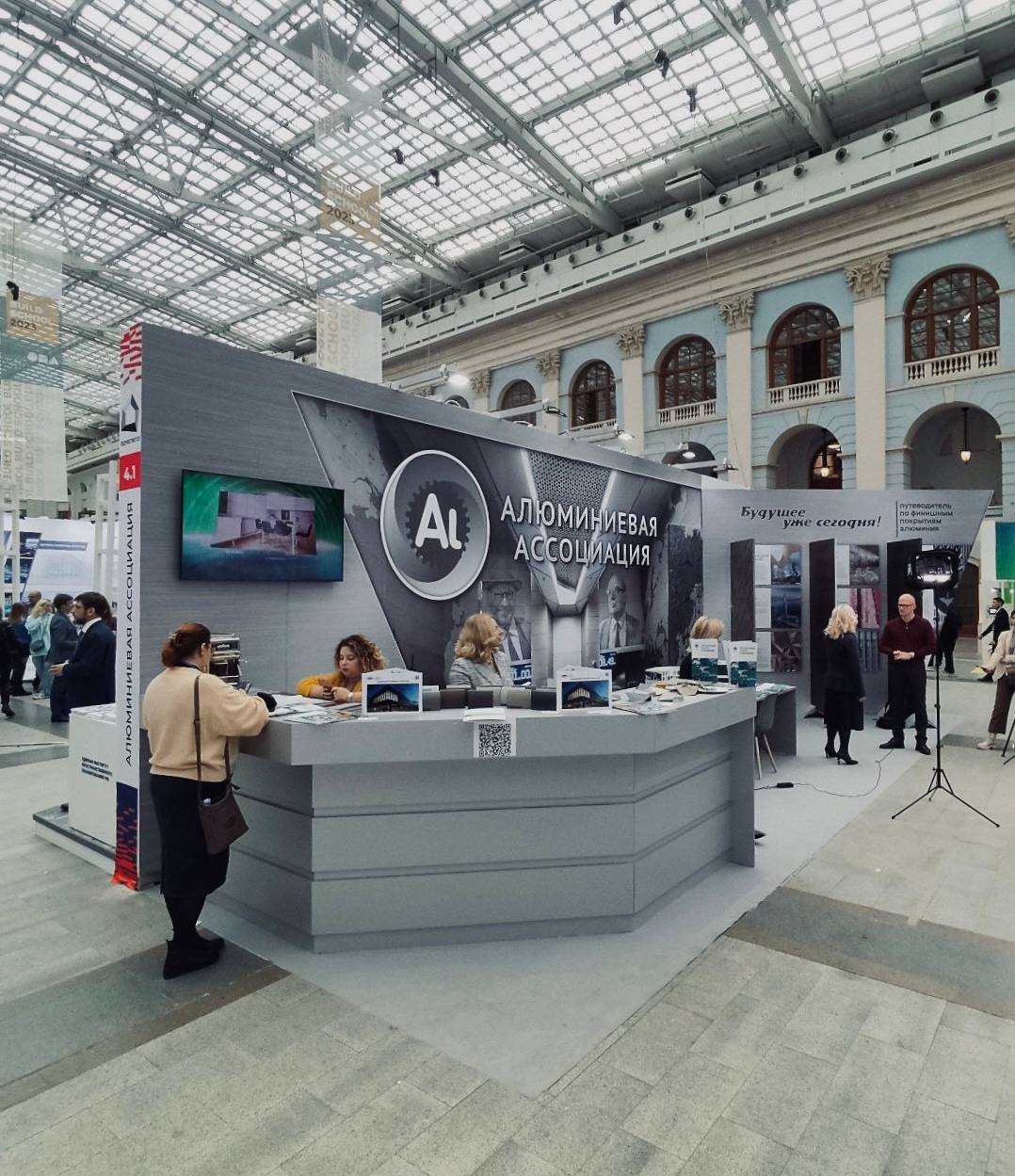 Только посмотрите на главный стенд мероприятия, который украшают наши алюминиевые панели с проектом метро "Аэропорт Внуково"!